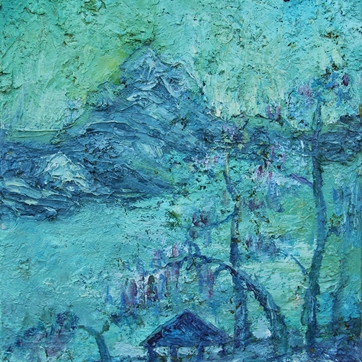 这几幅“蓝”色系的作品,是艺术家“内心”的情感表现,那画上的小树林是他儿时的玩伴,也是他长大后焦躁时可以慰藉的小树林,落到笔下,便充满了一股静谧的张力。这样的创作,总会不经意间就拨动起我们心底的情弦,好像有人在陪着你慢点走,陪你回归内心。
