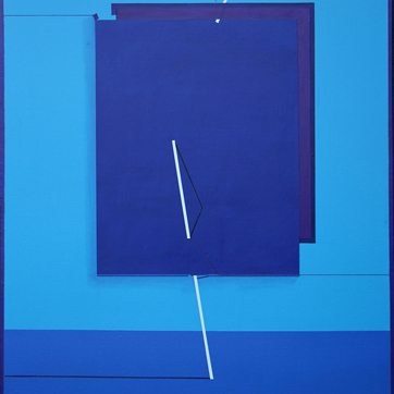 艺术家许方正的《蓝》给予了图像新的排图与分割,颇有冷抽象的用色,但却没有冷抽象严明的秩序与互相牵制的力量,而是以一种随意自然的状态存在着。